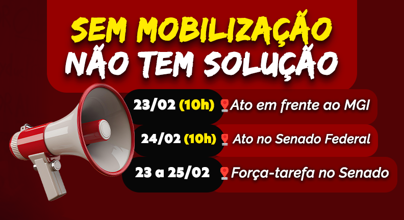 A primeira grande mobilização acontece na segunda-feira, dia 23 de fevereiro, com ato a partir das 10h, em frente ao Ministério da Gestão e da Inovação em Serviços Públicos (MGI), no Bloco C.