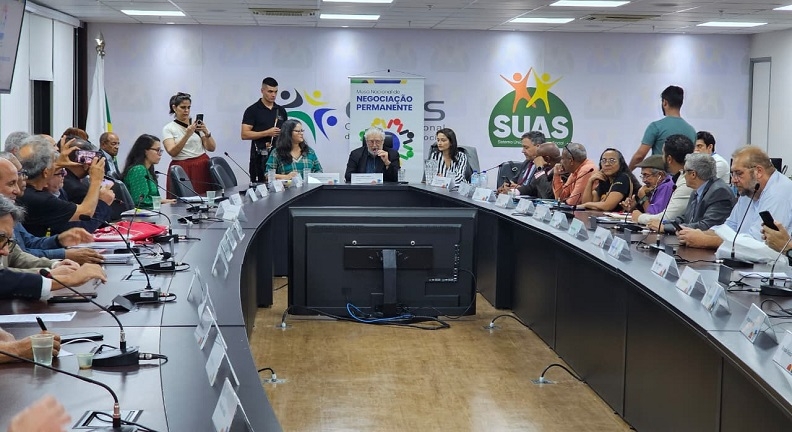 A Condsef/Fenadsef, que integra o Fonasefe, participou, como representante da Bancada Sindical, da reunião da Mesa Nacional de Negociação Permanente (MNNP) com o Ministério da Gestão e da Inovação em Serviços Públicos (MGI), realizada nesta quinta-feira (26), em Brasília.