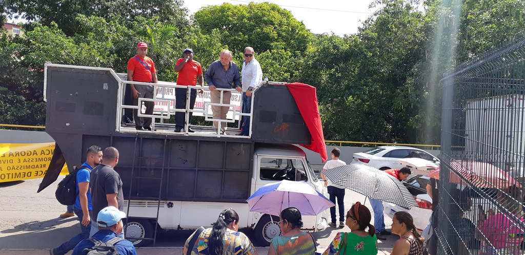 Usando o bordão utilizado por Wilson Lima quando apresentador de um programa de TV, os manifestantes levaram ao protesto faixas com os dizeres “A bronca agora é com nós!”, “Promessa é dívida. Readmissão já”.