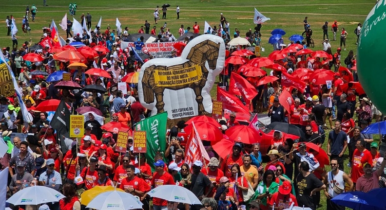 A Marcha Nacional do Serviço Público contra a Reforma Administrativa reuniu milhares de servidores federais, estaduais e municipais em Brasília, nesta quarta-feira (29), em protesto. O ato levou o recado de milhões de brasileiros contrários à proposta, considerada uma ameaça aos direitos sociais e aos serviços públicos.