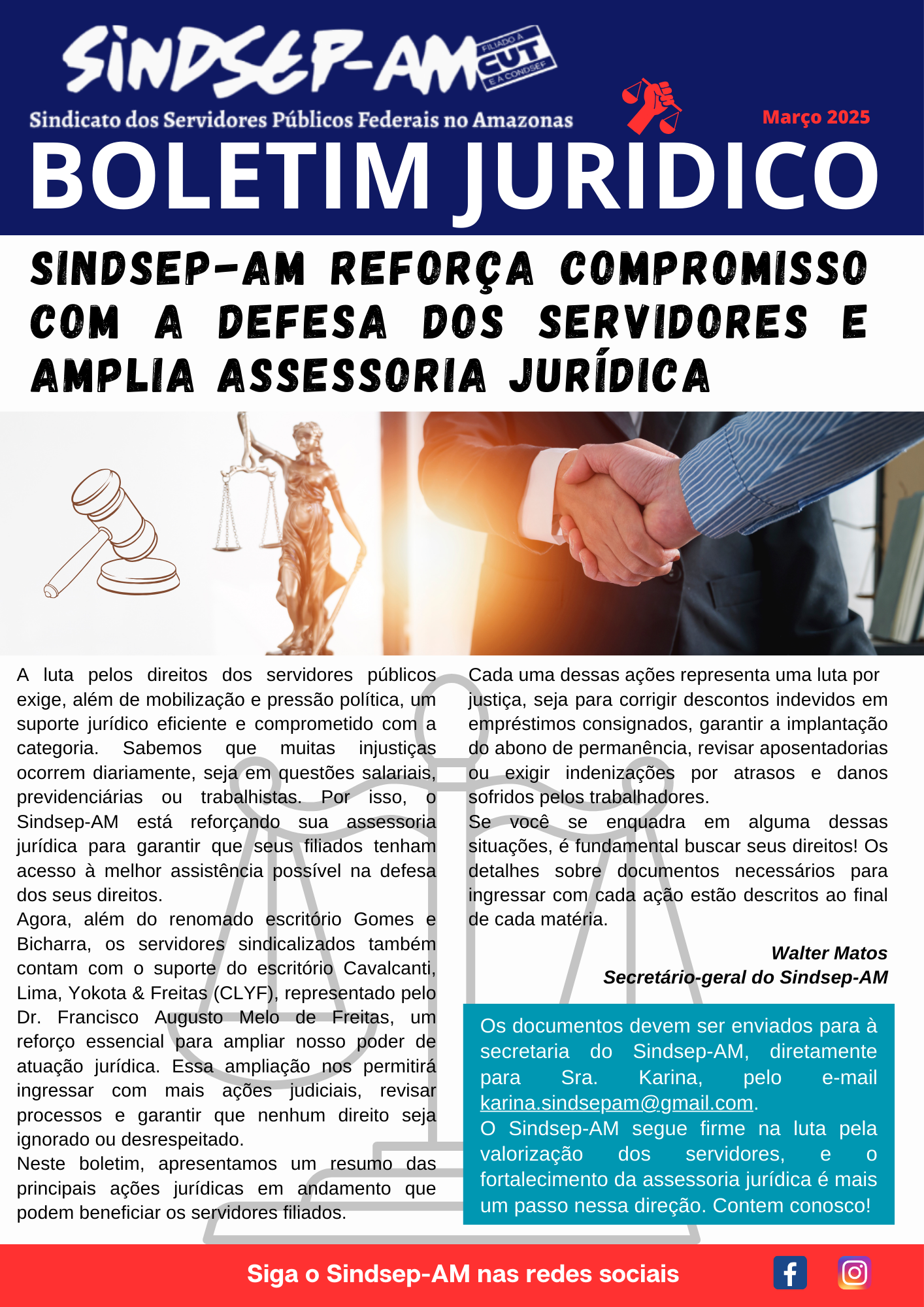 Boletins 12 de março de 2025 SINDSEP-AM REFORÇA COMPROMISSO COM A DEFESA DOS SERVIDORES E AMPLIA ASSESSORIA JURÍDICA